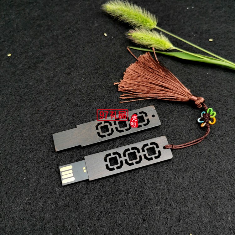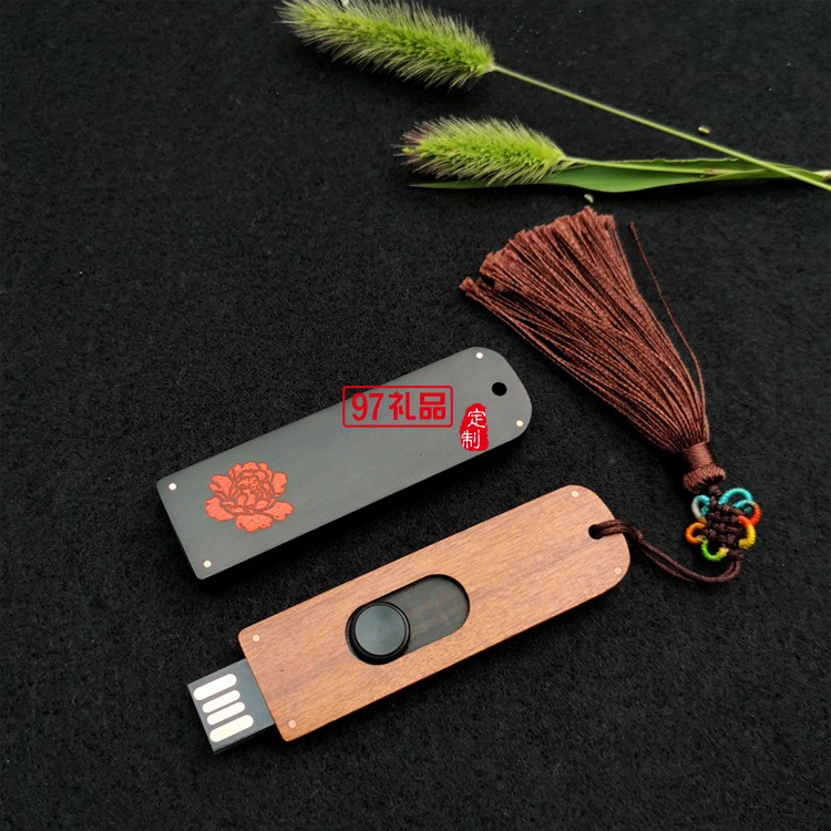 中國風(fēng)窗花創(chuàng)意U盤 鑲銀檀木推拉