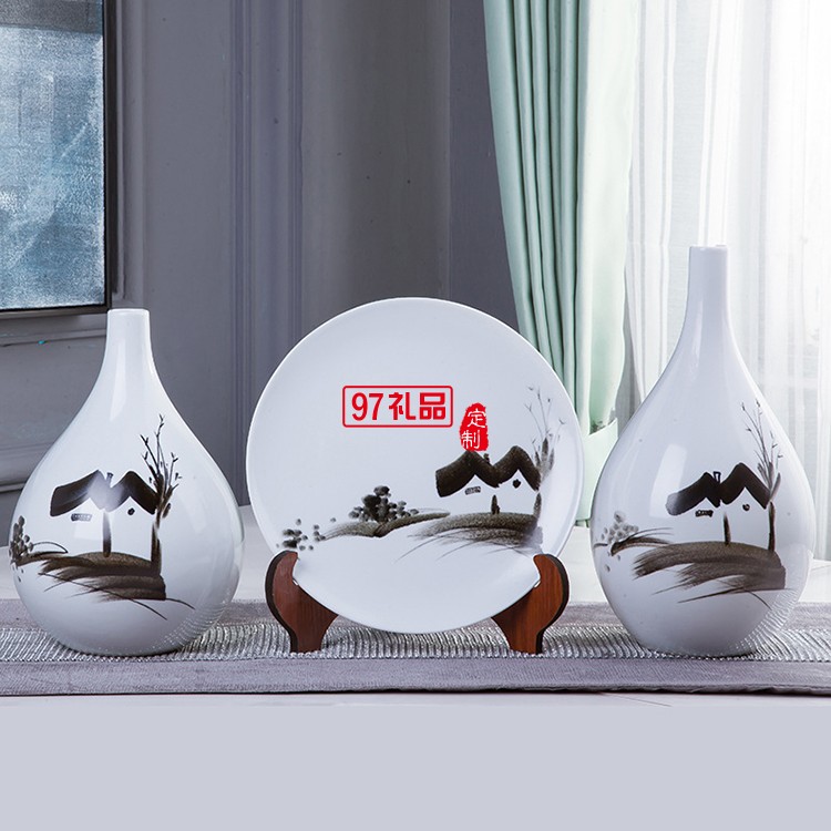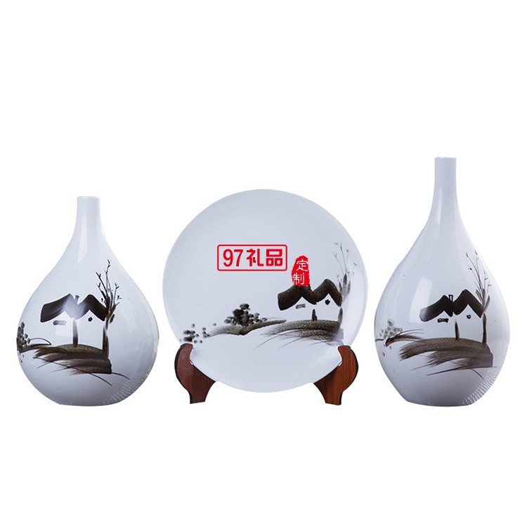 手繪鄉(xiāng)情陶瓷擺件 花瓶含托盤架 家居賓館酒店大廳開張開業(yè)展會用