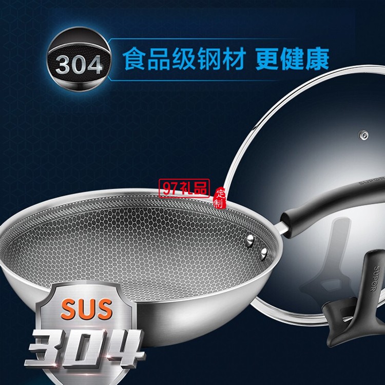 蘇泊爾炒鍋防粘鍋不銹鋼電磁爐炒菜鍋CC32JA9定制公司廣告禮品