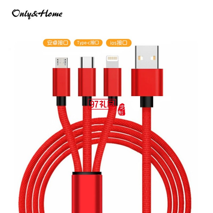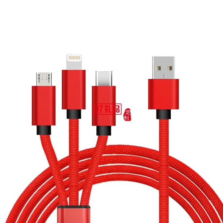 一拖三布藝閃充數(shù)據(jù)線 KL-YTS06定制公司廣告禮品