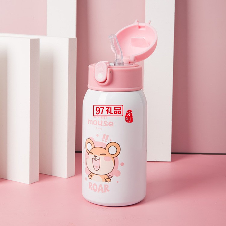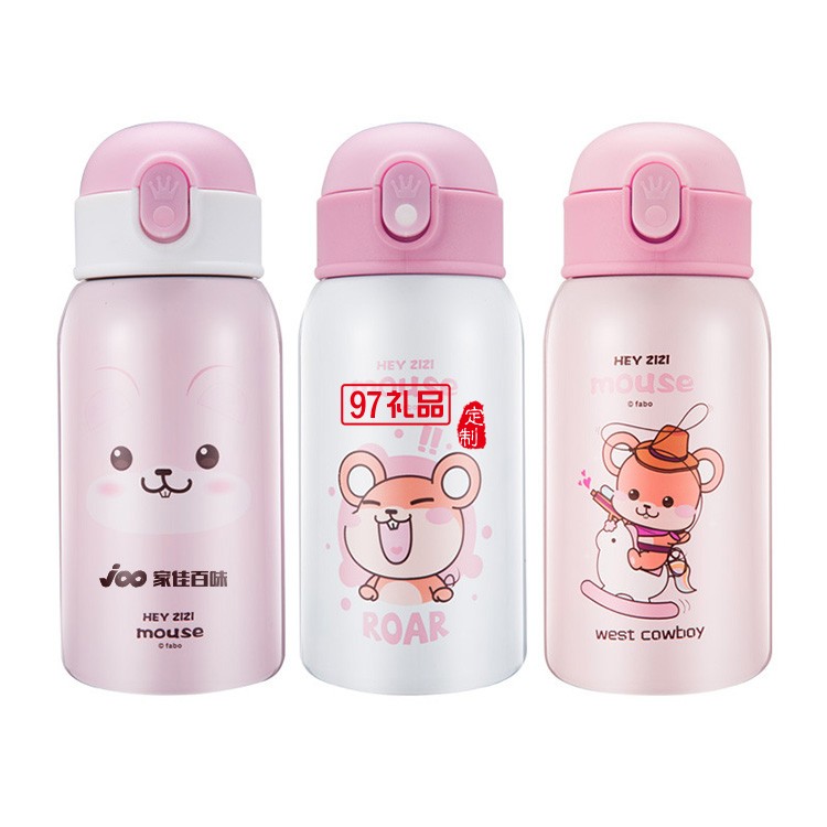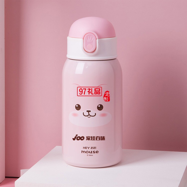 家佳百味定制 卡通保溫杯不銹鋼彈跳蓋吸管水杯