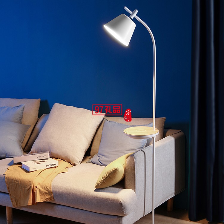 沙發(fā)旁邊手機充電落地?zé)艨蛷d臥室床頭輕奢無線充電立式臺燈定制公司廣告禮品