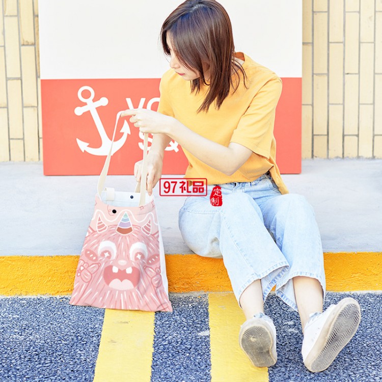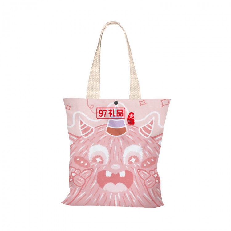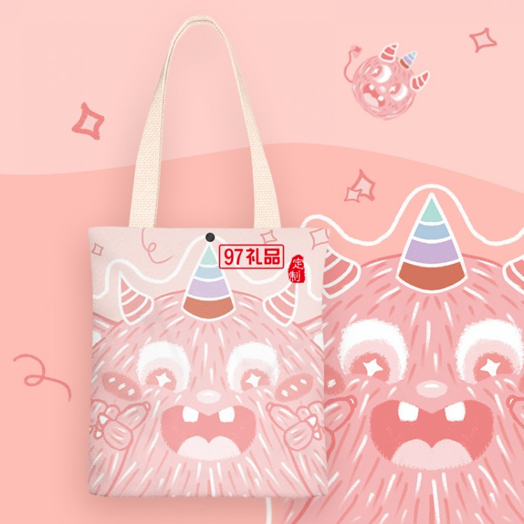 新款粉色小怪獸學(xué)生大容量單肩帆布手提袋購物袋定制