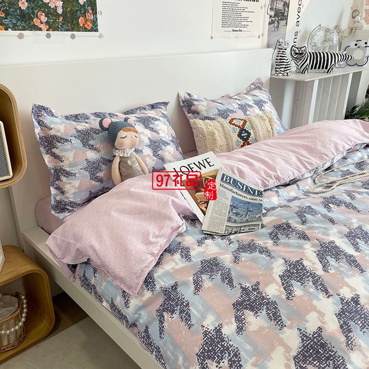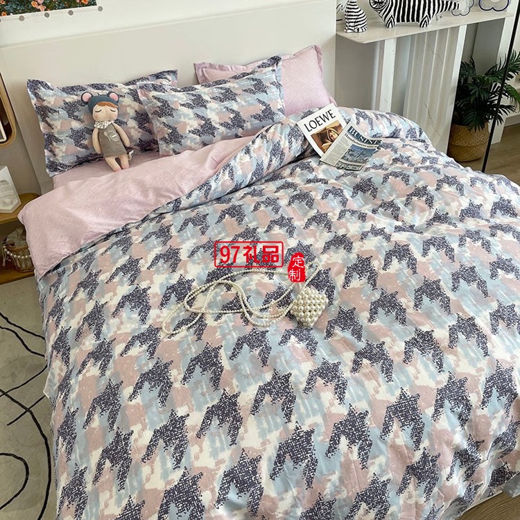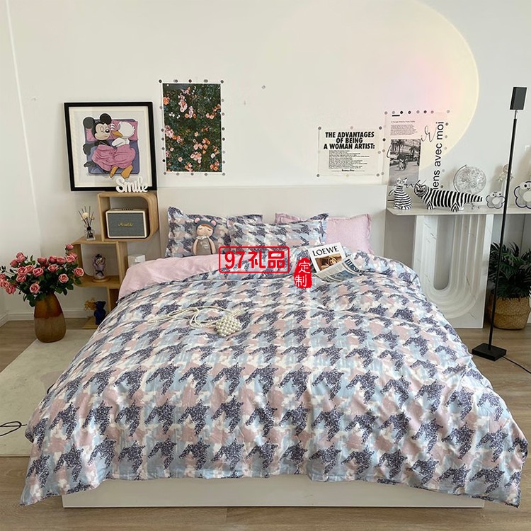 啄木鳥(niǎo) 卡膚棉四件套-千鳥(niǎo)格 ZMN-KFM002定制公司廣告禮品