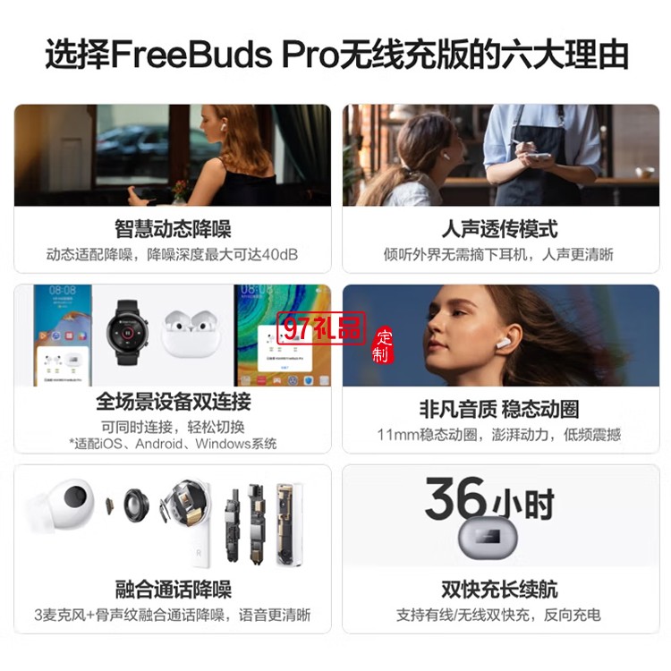 華為FreeBuds Pro無(wú)線藍(lán)牙耳機(jī)主動(dòng)降噪入耳式定制公司廣告禮品