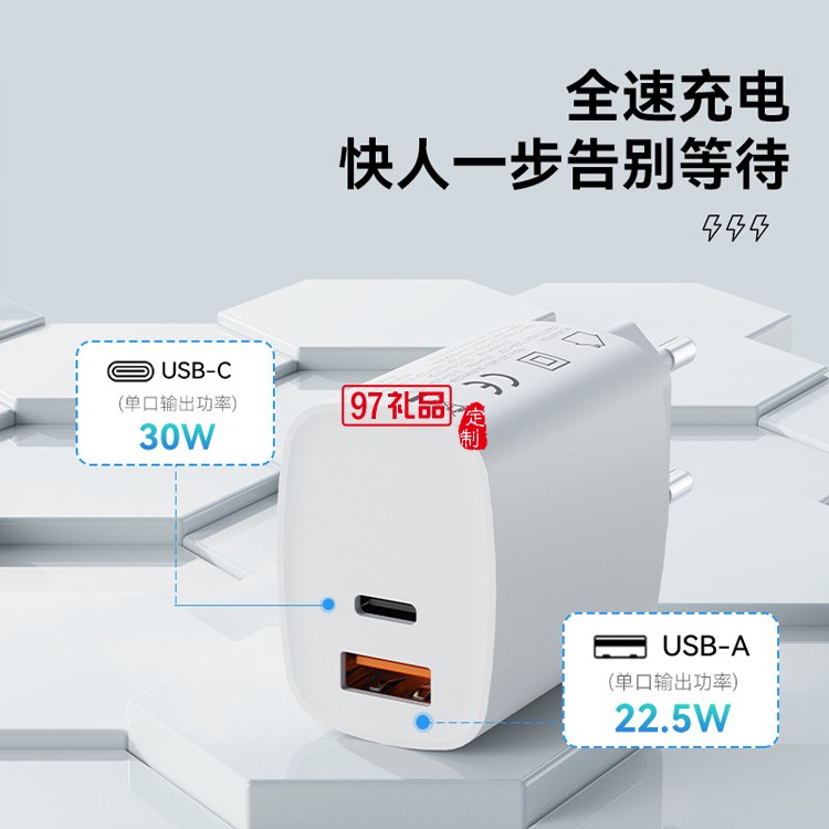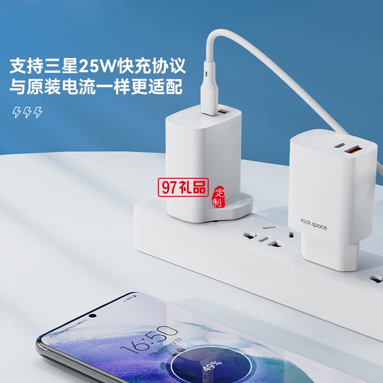 rock space鋰電池T51雙口A+C旅行充電器定制公司廣告禮品
