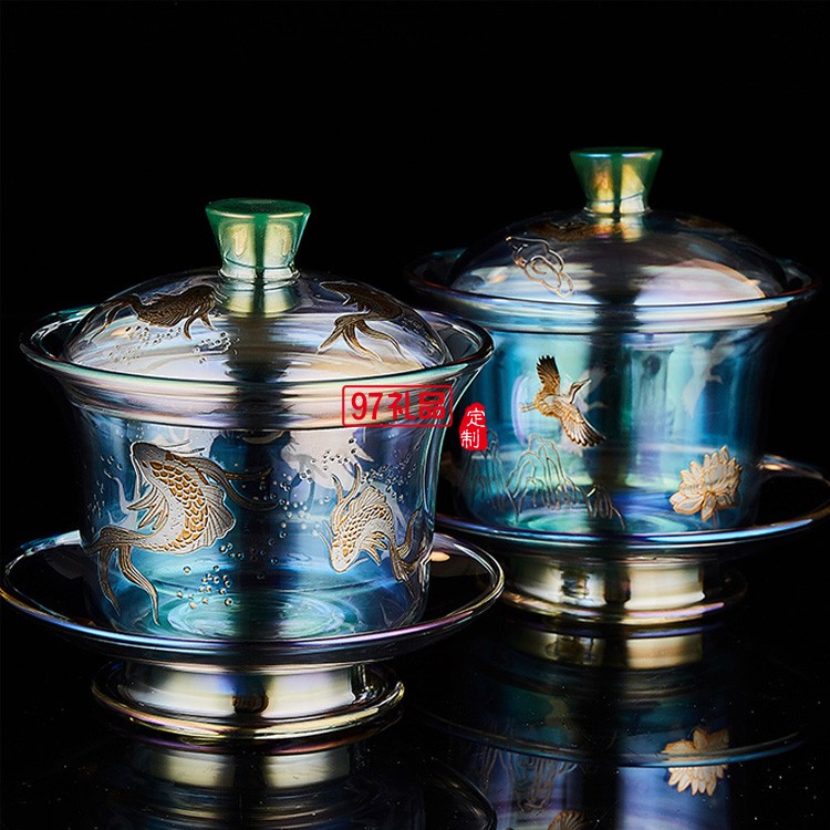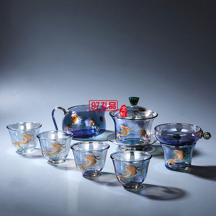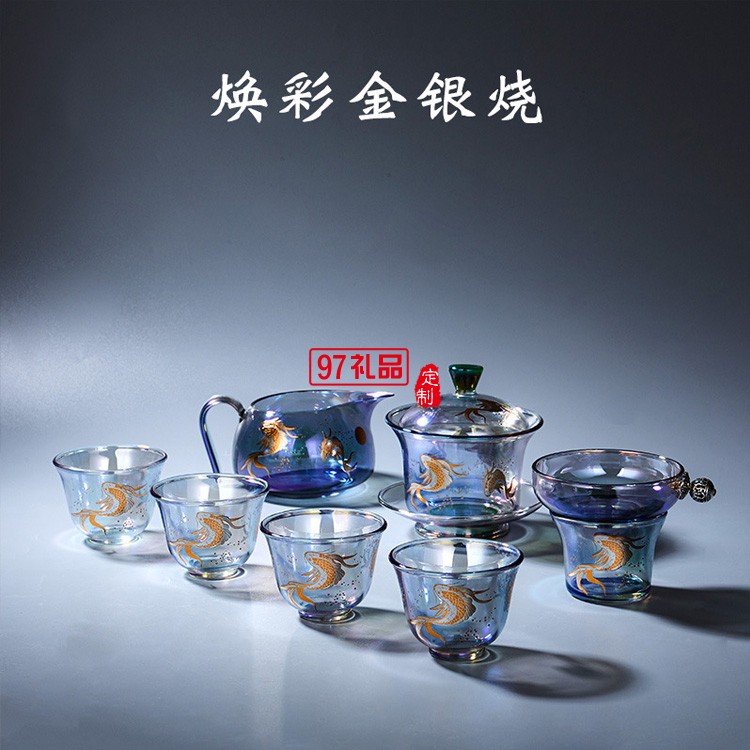 玻璃茶具套裝 整套茶具加厚耐熱玻璃蓋碗高檔商務(wù)禮品定制