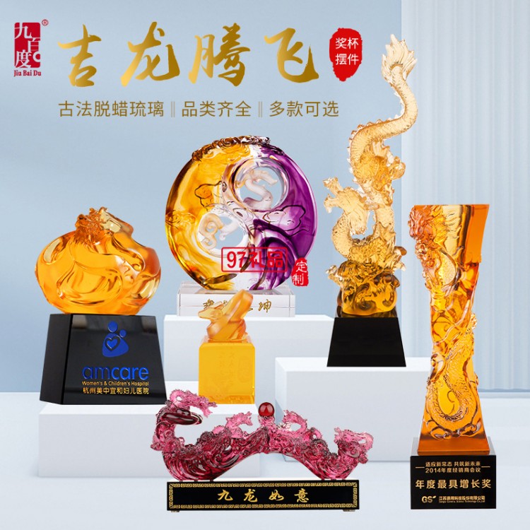 2024年龍年獎杯定制開業(yè)禮物龍年琉璃擺件12生肖龍年水晶獎杯定做