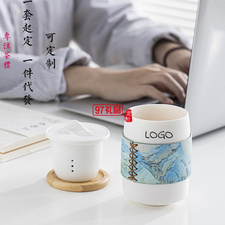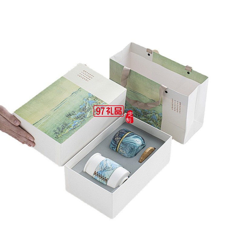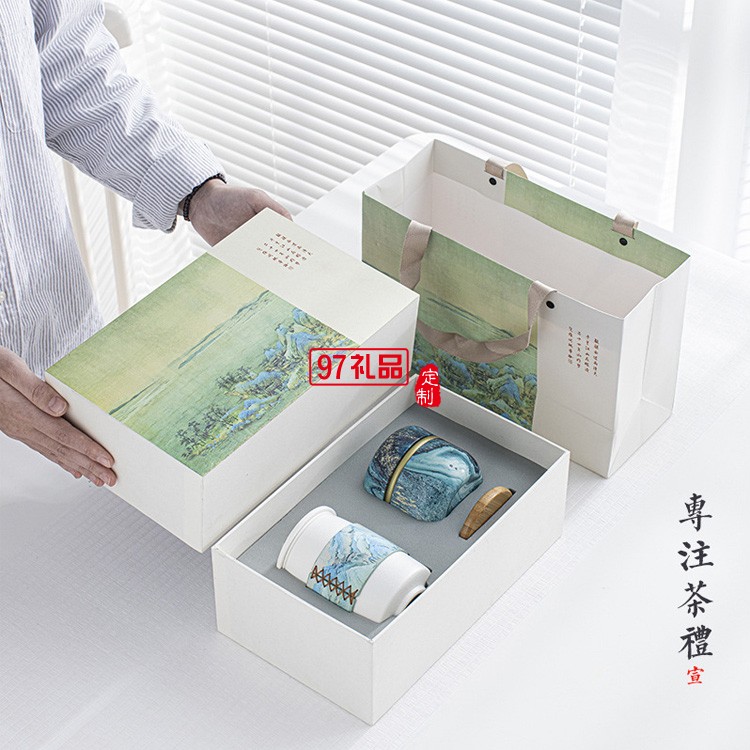 千里江山辦公室陶瓷茶杯套裝國(guó)潮禮盒裝個(gè)人杯禮品