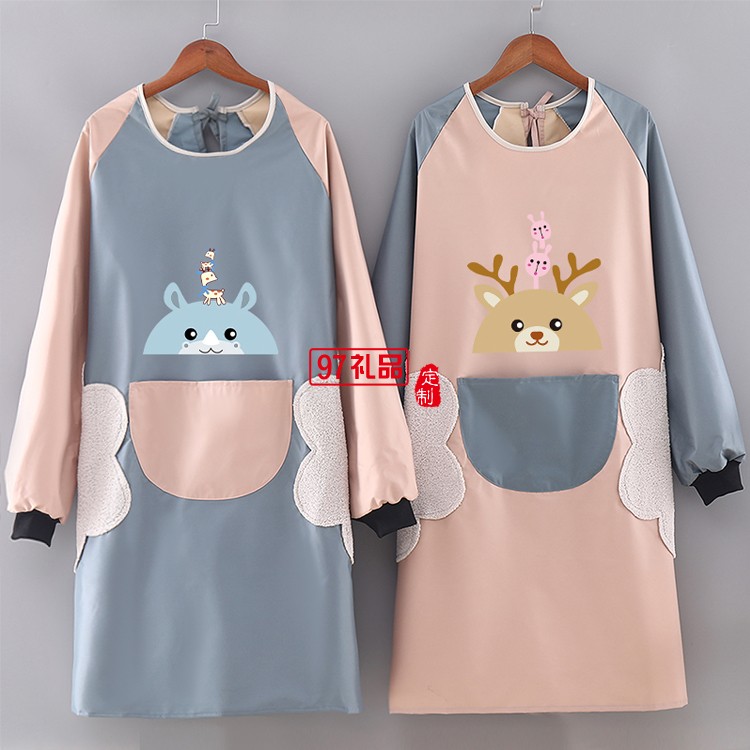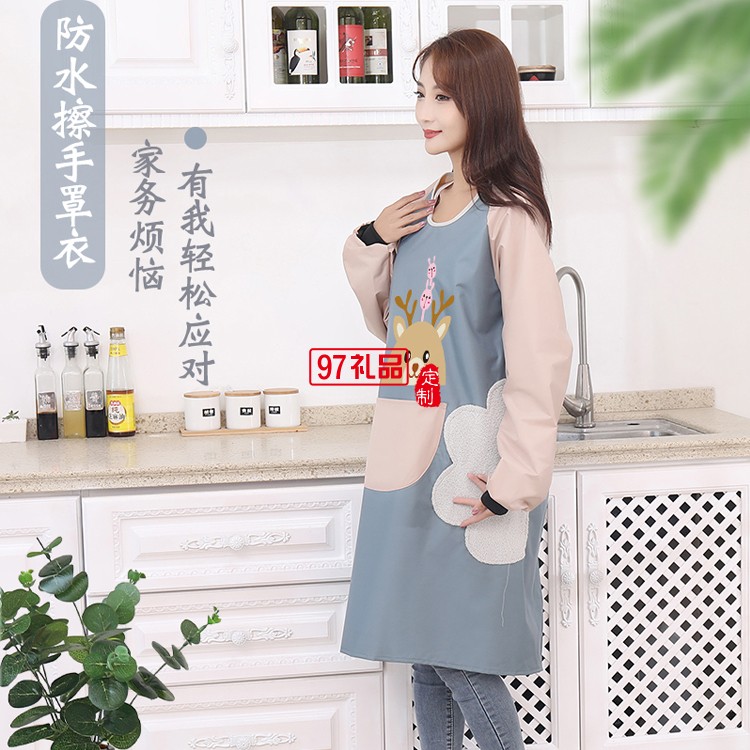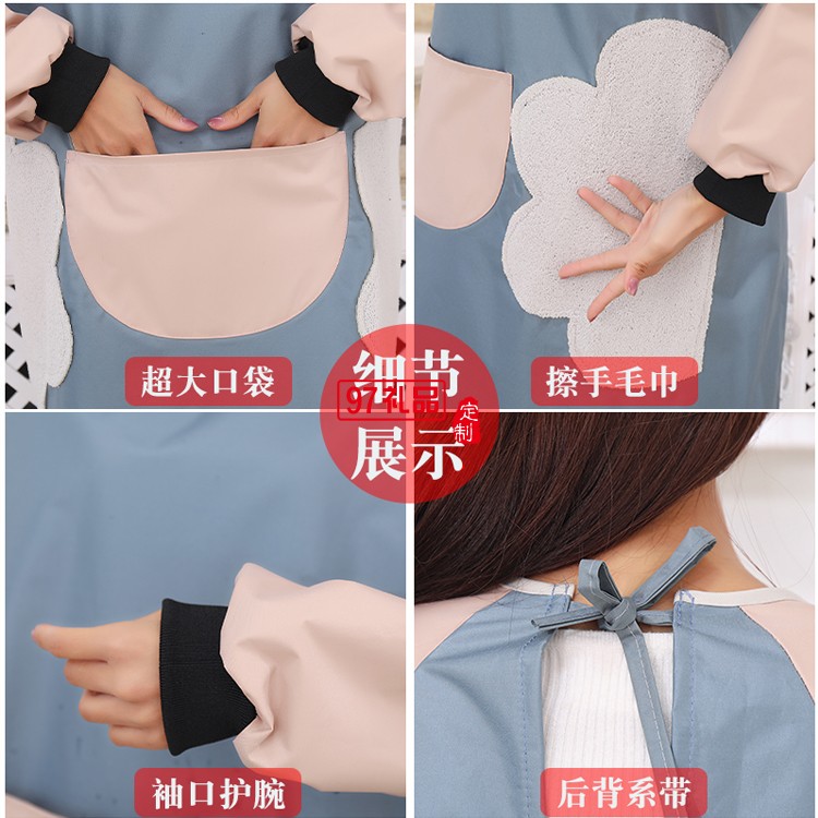 長袖圍裙女商用廚房防油工作服做飯圍腰帶袖罩衣大人定制公司廣告禮品