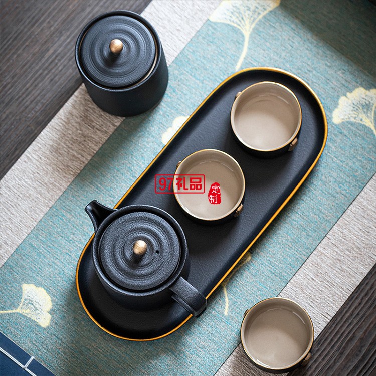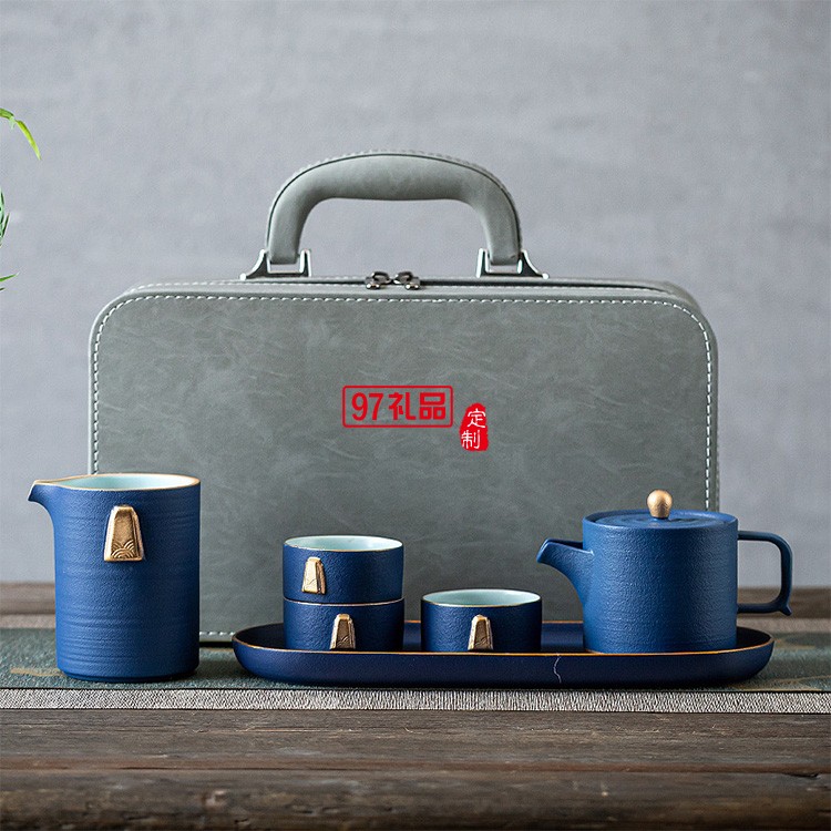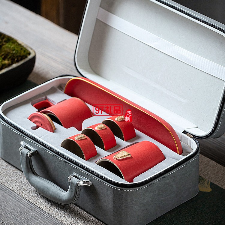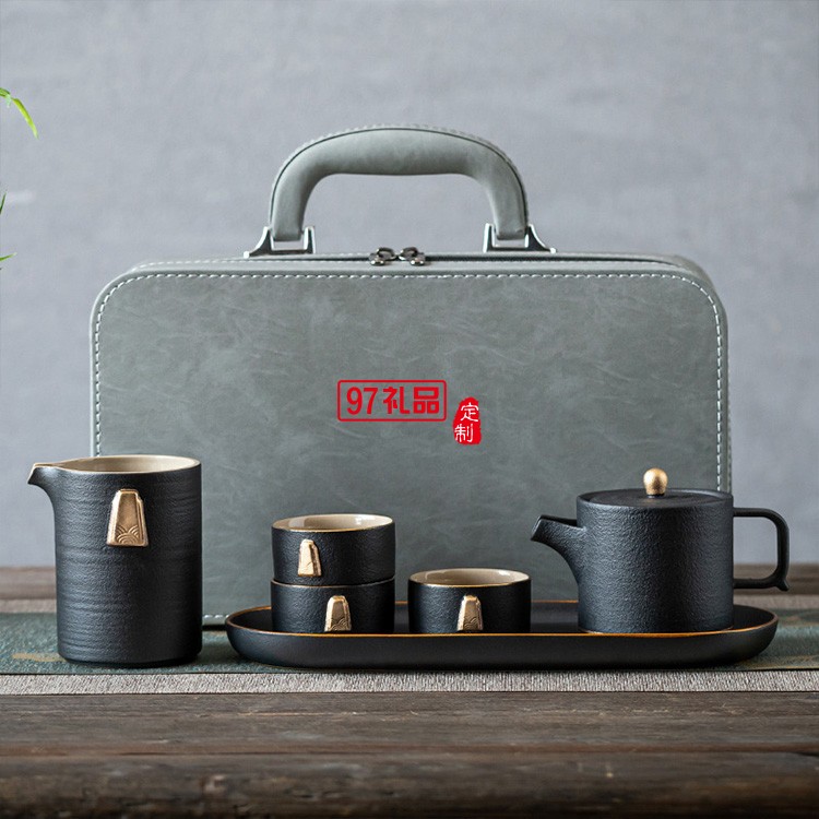 新品高檔描金茶具商務(wù)皮包茶具便攜泡茶茶具套裝 可定制logo