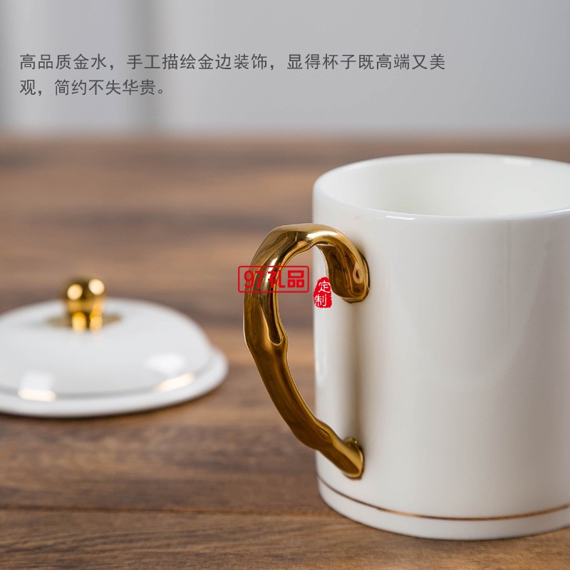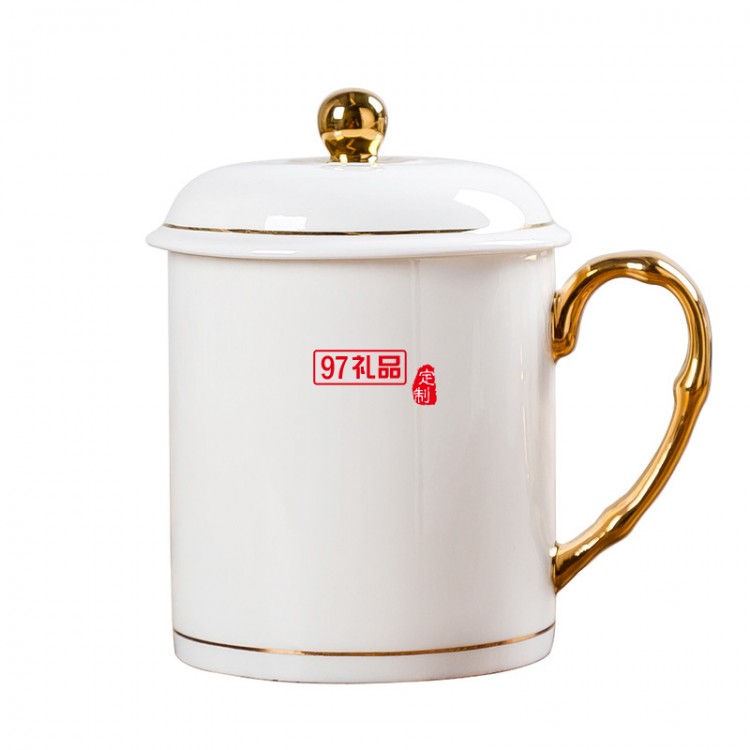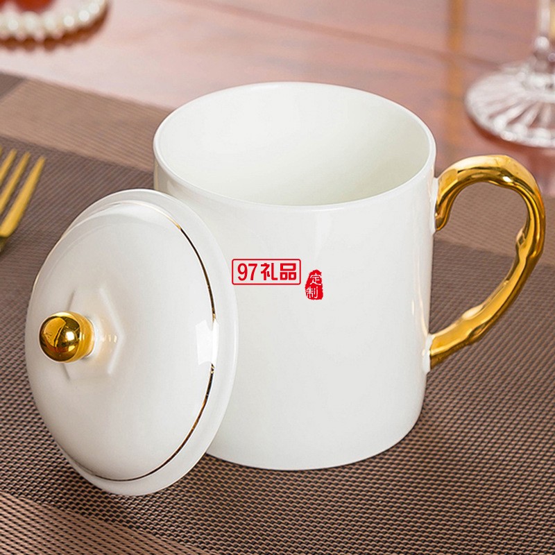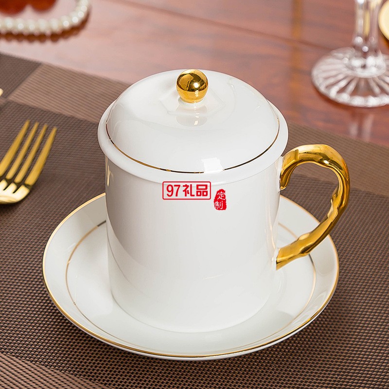 中秋國慶節(jié)禮品辦公會議杯帶蓋景德鎮(zhèn)陶瓷茶杯450ML明珠杯碟定制