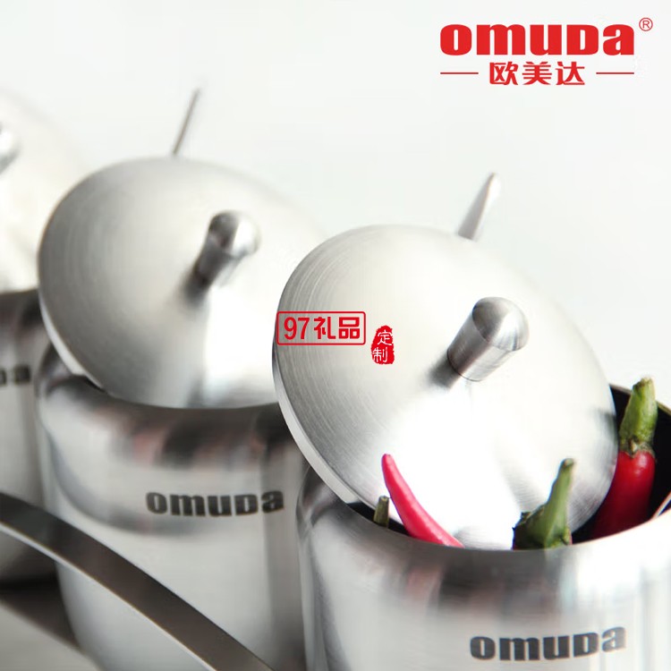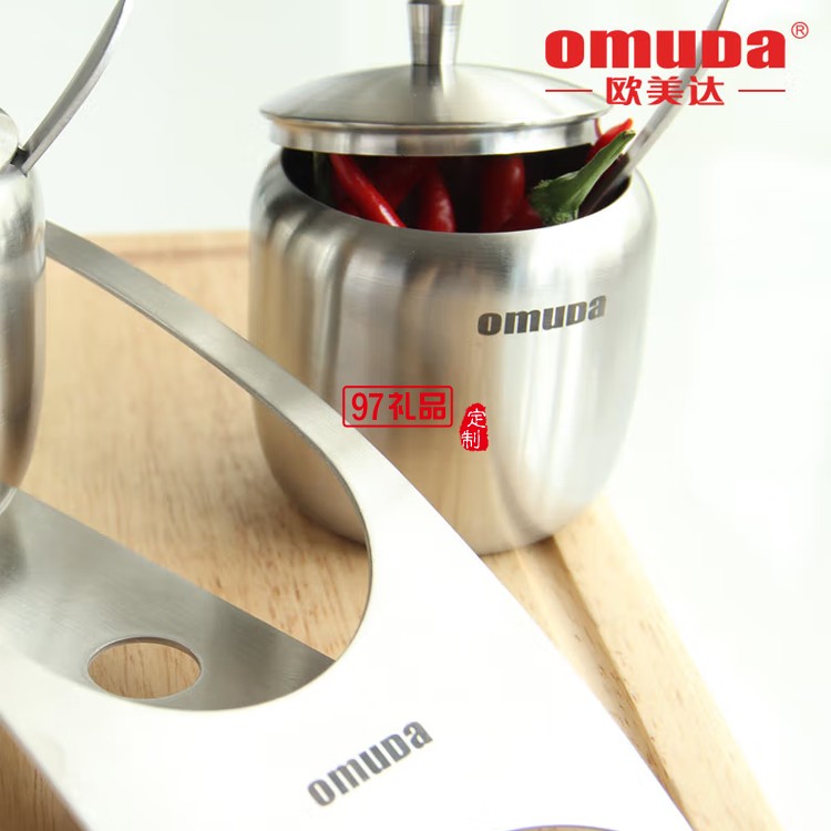 歐美達(dá)調(diào)味罐調(diào)料304不銹鋼廚房?jī)?chǔ)物瓶油鹽罐定制公司廣告禮品