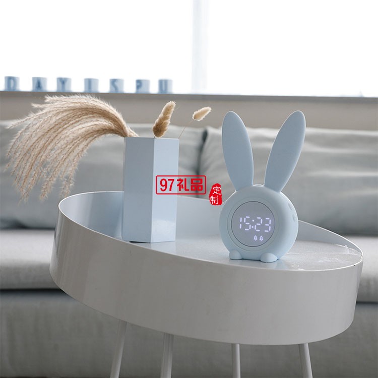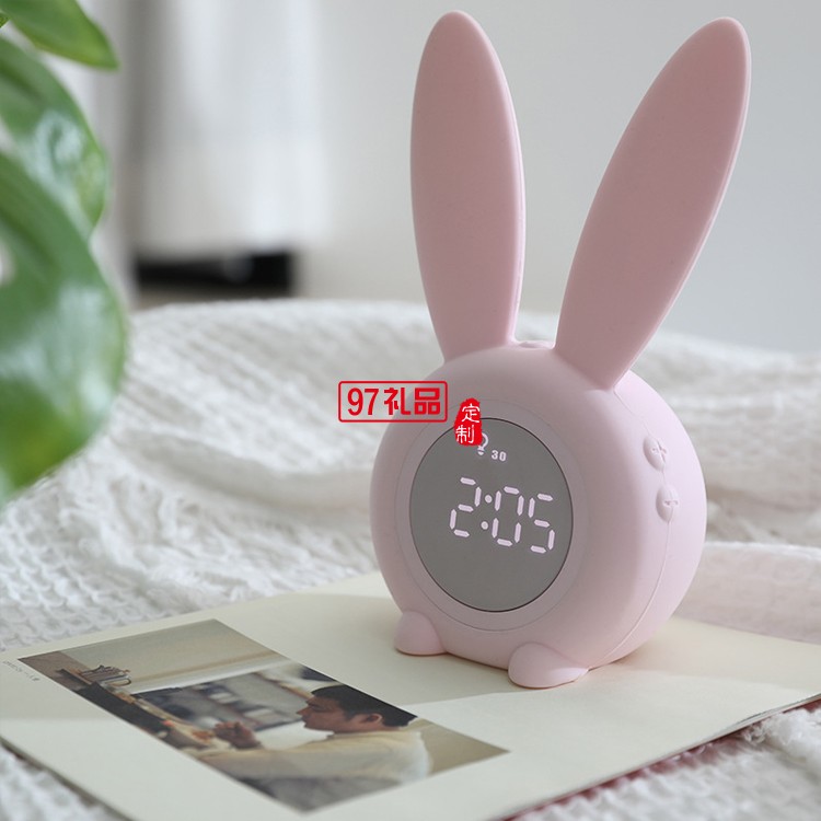 創(chuàng)意led聲光控小夜燈溫度顯示萌兔定時鬧鐘