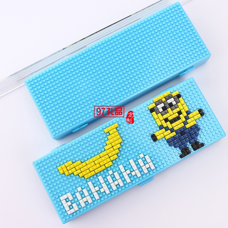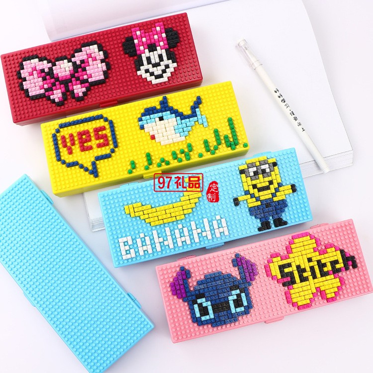 創(chuàng)意兒童拼裝卡通塑料積木文具盒 DIY學(xué)生鉛筆盒