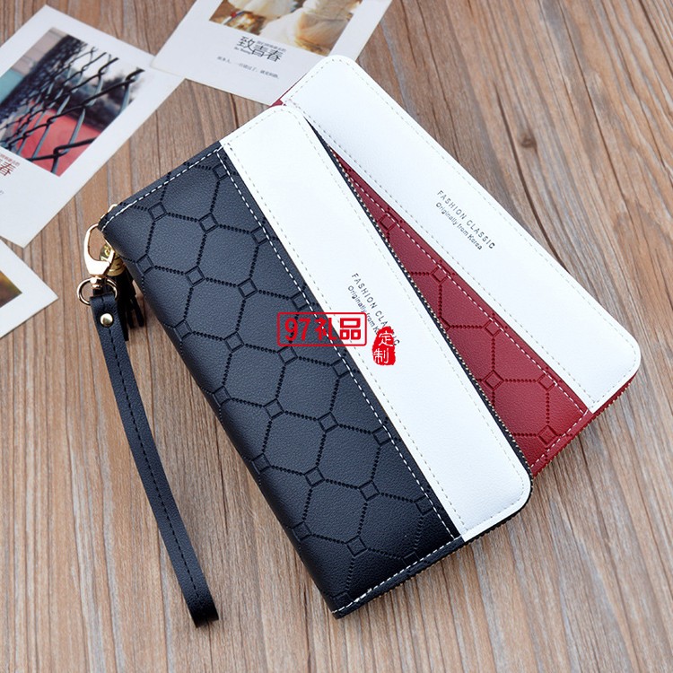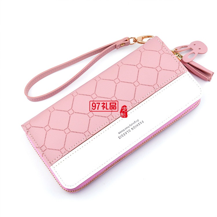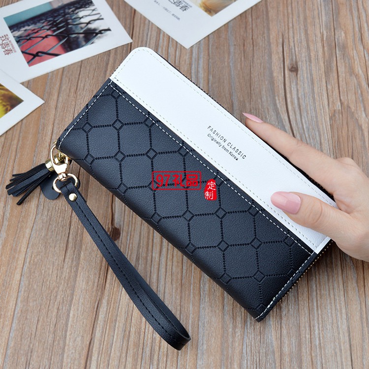 新款手拿包女士錢包女長(zhǎng)款拉鏈流蘇韓版撞色壓花大容量錢夾
