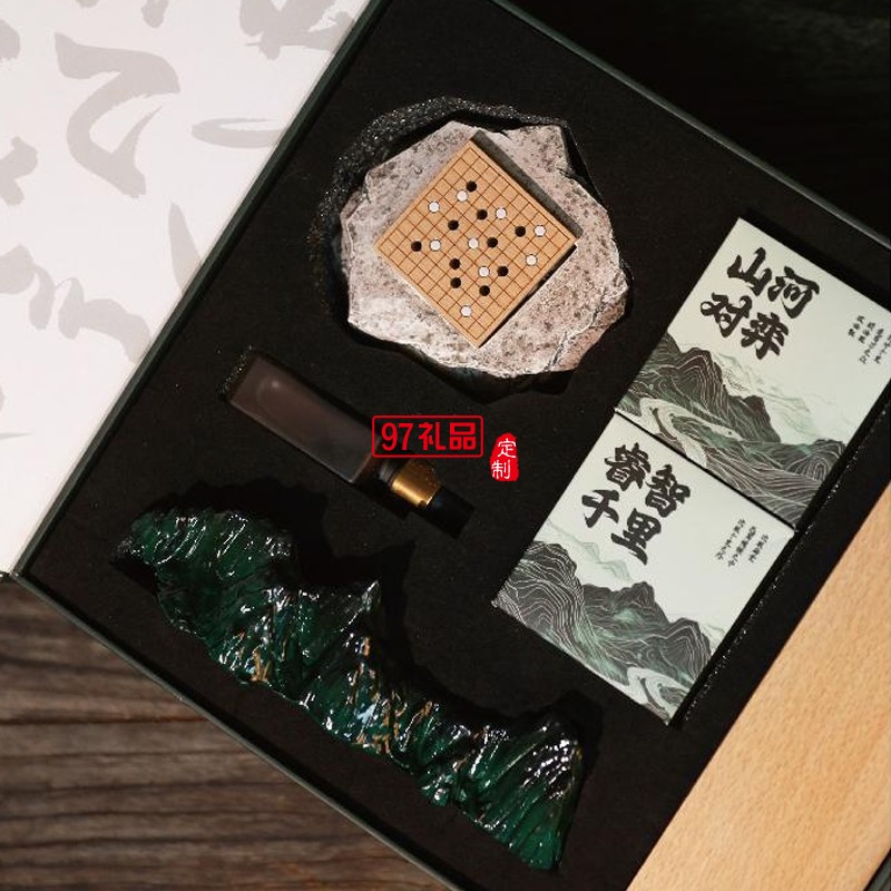 睿智千里文創(chuàng)禮品萬里江山變色茶寵圍棋無火香薰器中高檔端午禮盒