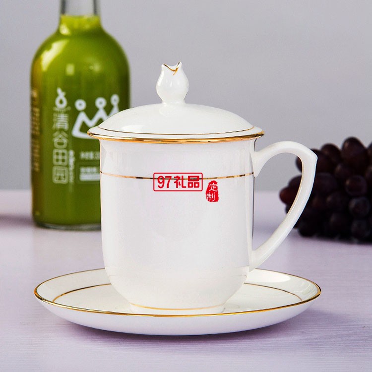 景德鎮(zhèn)骨瓷杯陶瓷茶具酒店會議杯定制家用帶蓋水杯描金邊茶杯