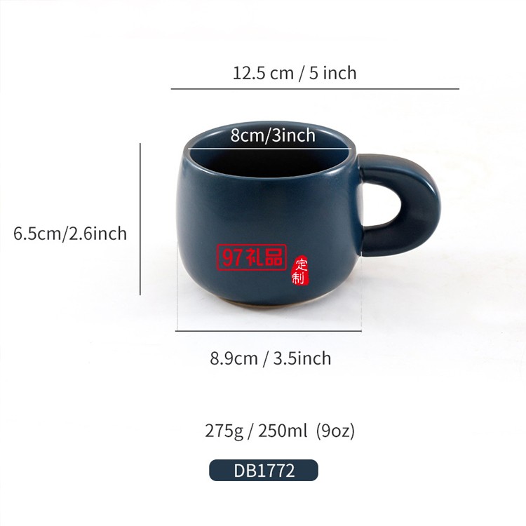 定制克萊因藍(lán)咖啡杯啞光馬克杯創(chuàng)意大肚陶瓷杯伴手禮活動小禮品