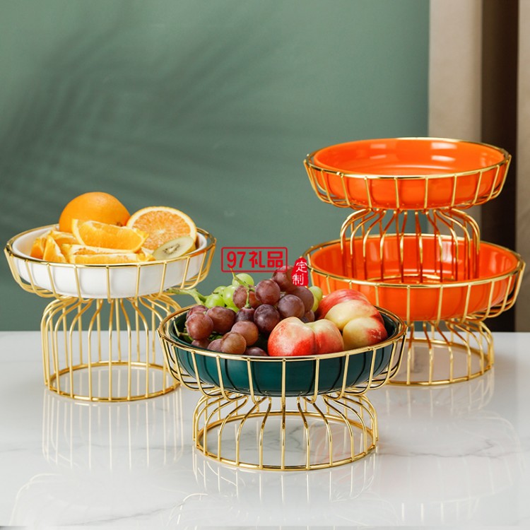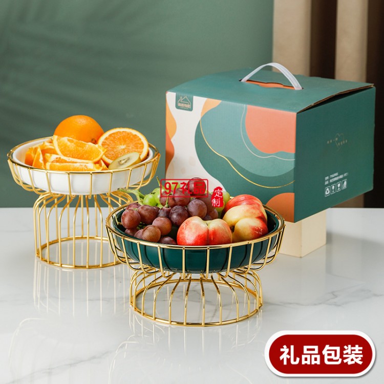 ins水果盤(pán)鐵藝架+陶瓷甜品盤(pán)糖果盤(pán)網(wǎng)紅高腳果盤(pán)禮盒套裝伴手禮