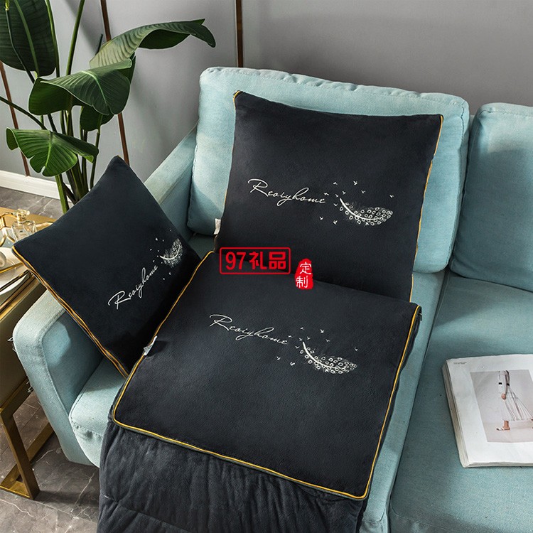 水晶絨絎縫抱枕被—羽毛刺繡靠墊被兩用小被子