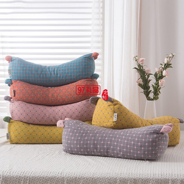 家用舒適棉質(zhì)老虎枕多色可選格紋護(hù)頸枕蕎麥殼填充午睡枕
