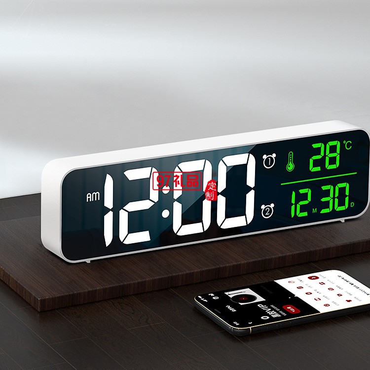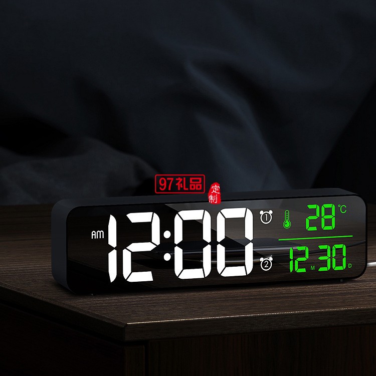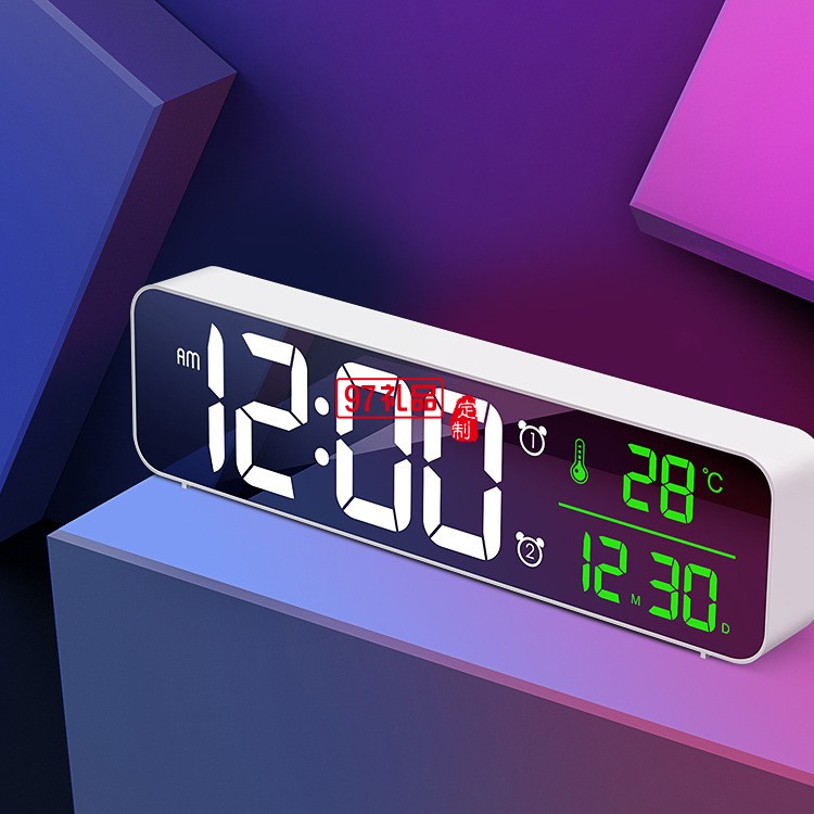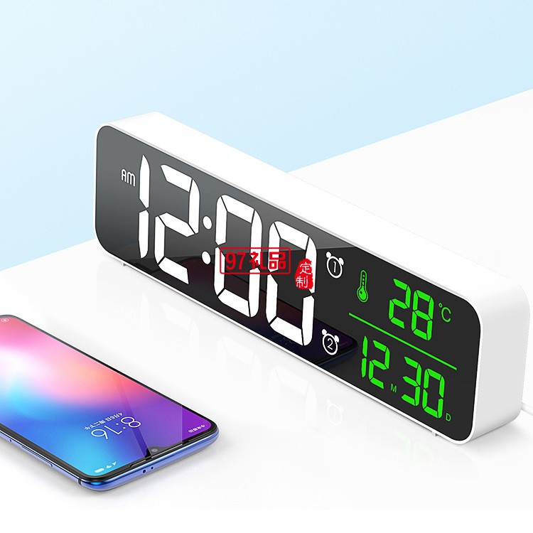LED數(shù)字鏡面掛鐘多功能簡約兒童學(xué)生桌面電子鬧鐘