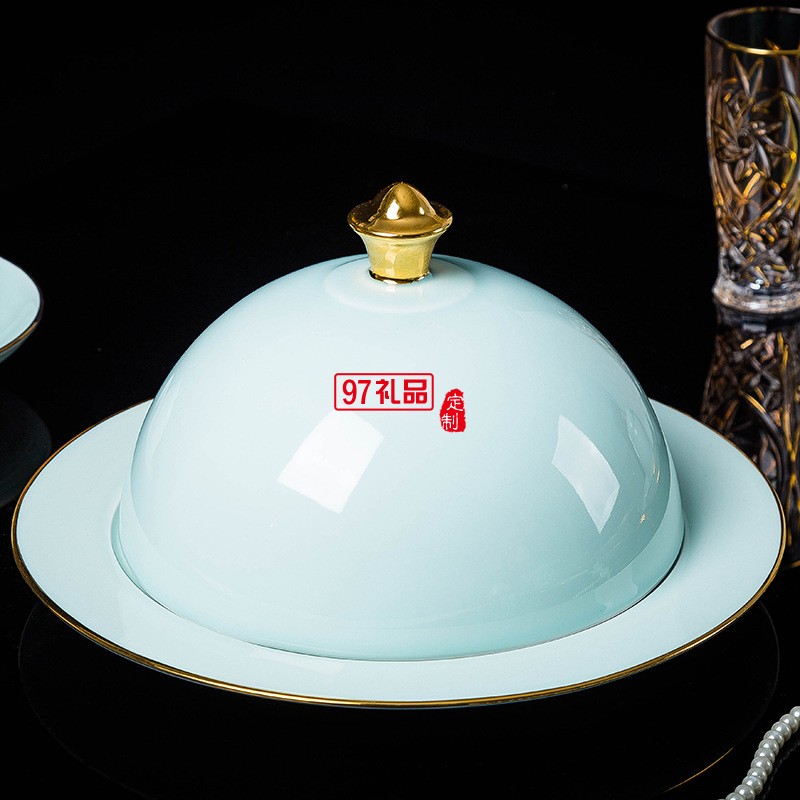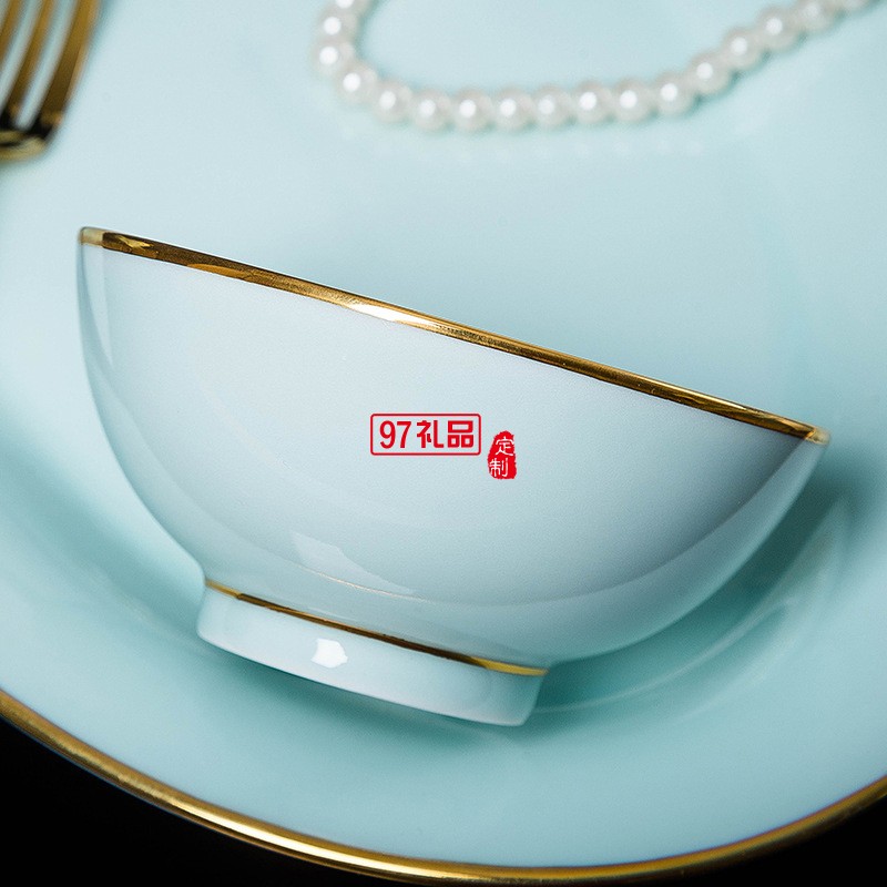 陶瓷餐具景德鎮(zhèn)青玉瓷手繪金邊碗碟套裝白瓷家用禮品定制青瓷套碗