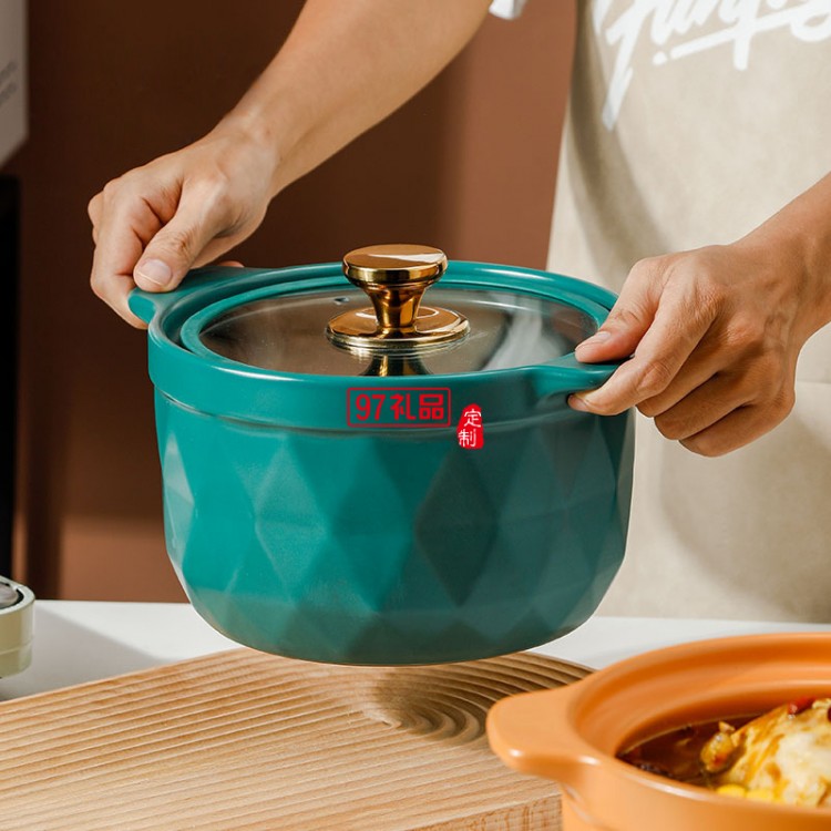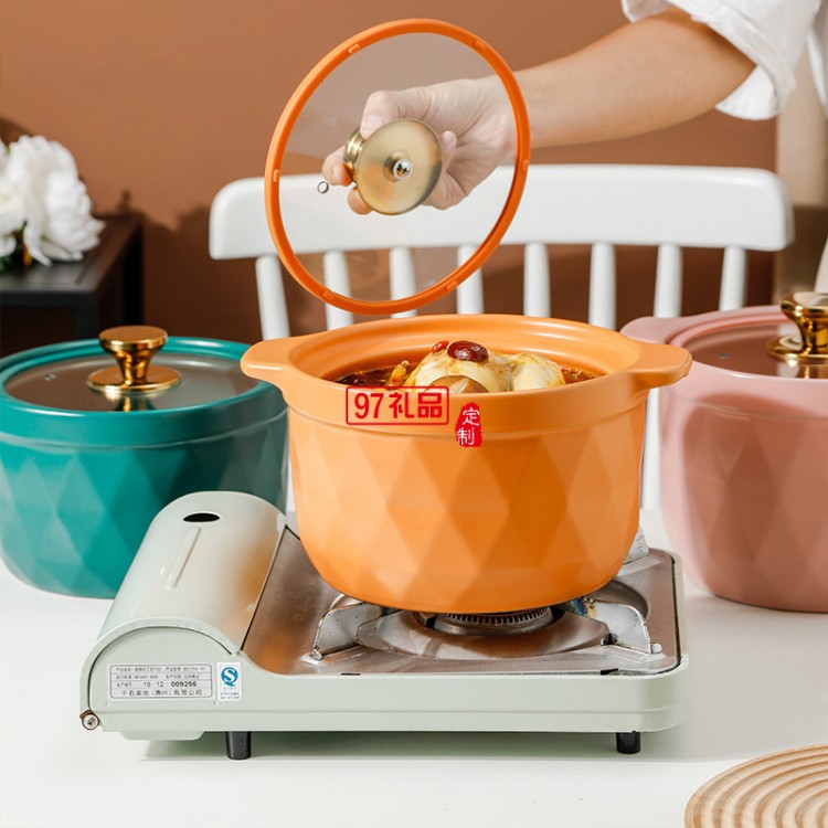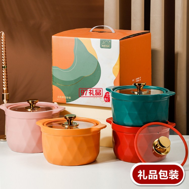 2.5L網(wǎng)紅陶瓷砂鍋禮品套裝帶玻璃蓋明火燉鍋彩盒耐高溫湯鍋伴手禮