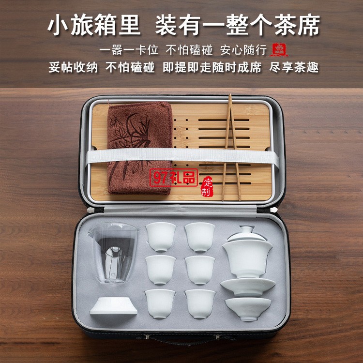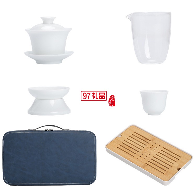 白瓷茶藝教學(xué)功夫茶具套裝家用便攜包旅行德化陶瓷蓋碗泡茶具