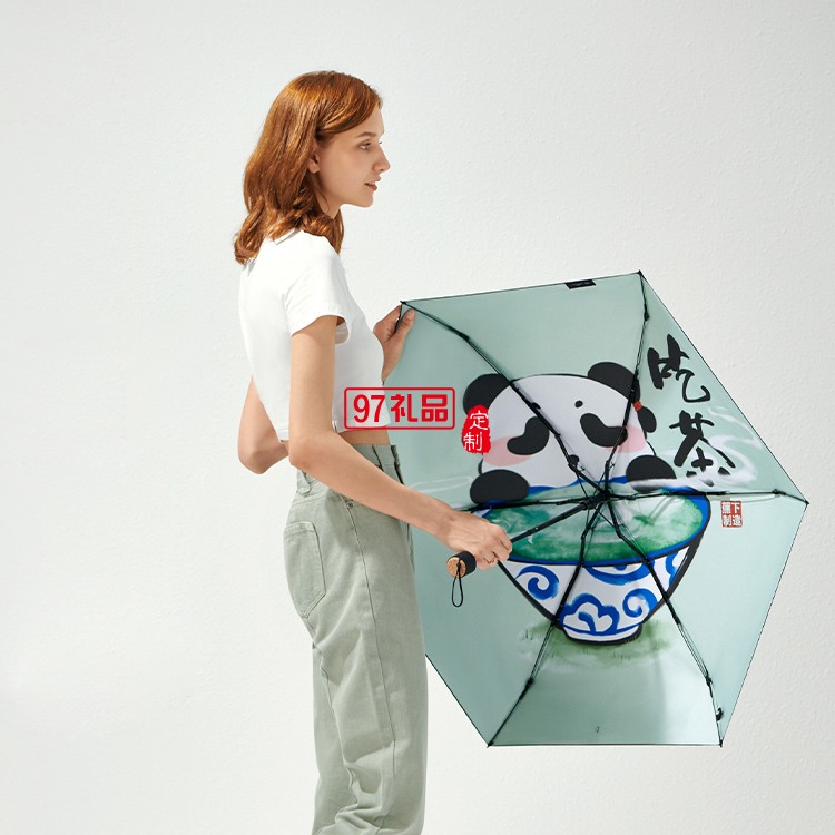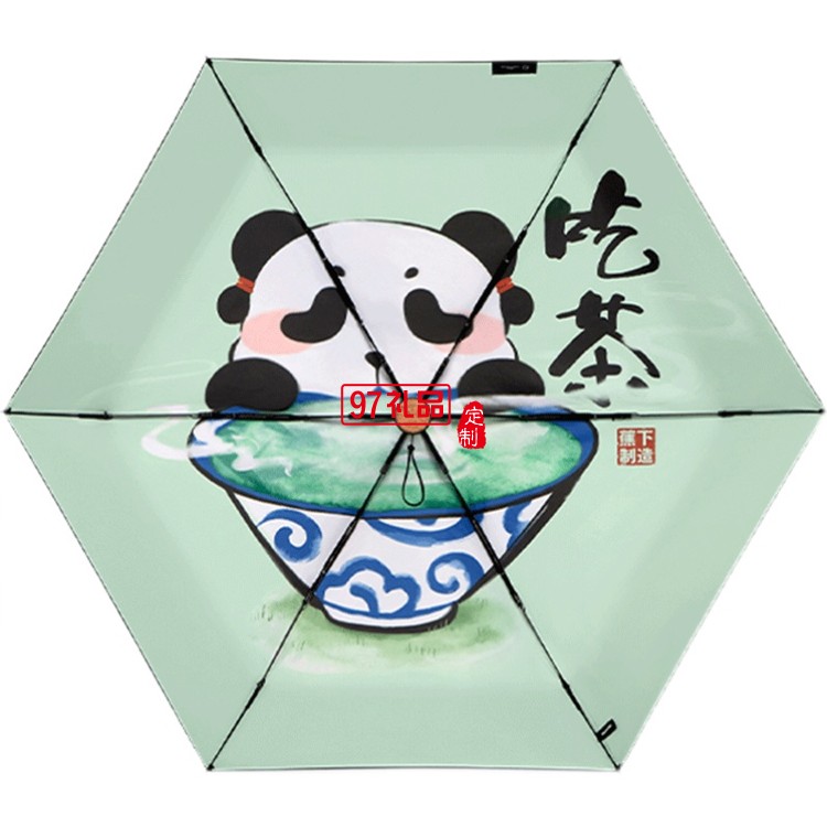 遮陽(yáng)傘女晴雨兩用小巧便攜膠囊黑膠防曬國(guó)潮熊貓?zhí)?yáng)傘定制公司廣告禮品