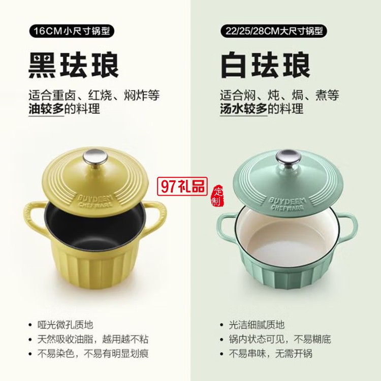 琺瑯鍋 燜煮小圓鍋湯鍋 多彩雙耳鑄鐵鍋燉鍋CP5161定制公司廣告禮品