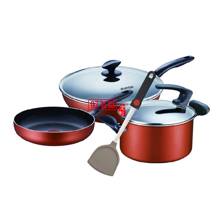 蘇泊爾不粘鍋多功能炒鍋煎鍋湯奶鍋三件套T1232T定制公司廣告禮品