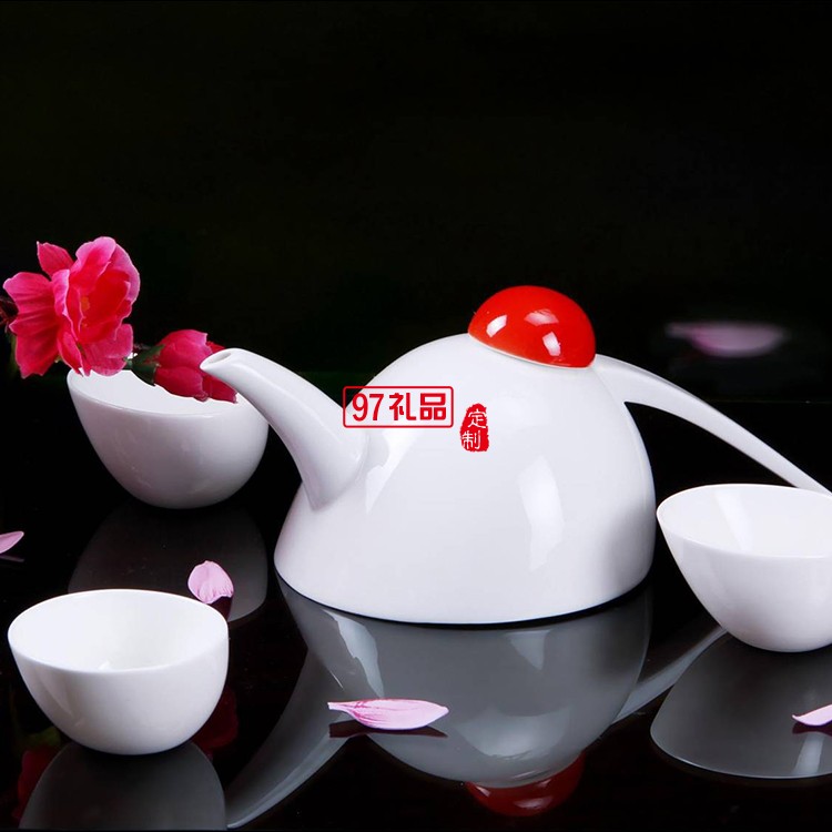 【推薦】:橢圓形的壺身加橢圓形的杯子,整體搭配協(xié)調(diào),紅色的壺蓋是一大亮點,使整套茶具又上升了一個層次。