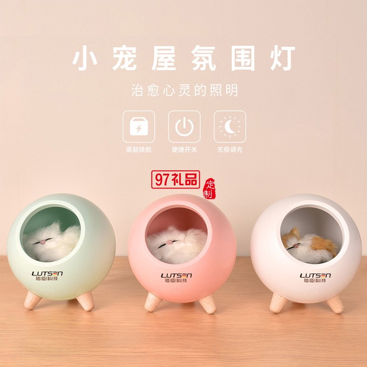 陸臣科技定制新款小寵屋貓咪小夜燈充電LED氛圍燈