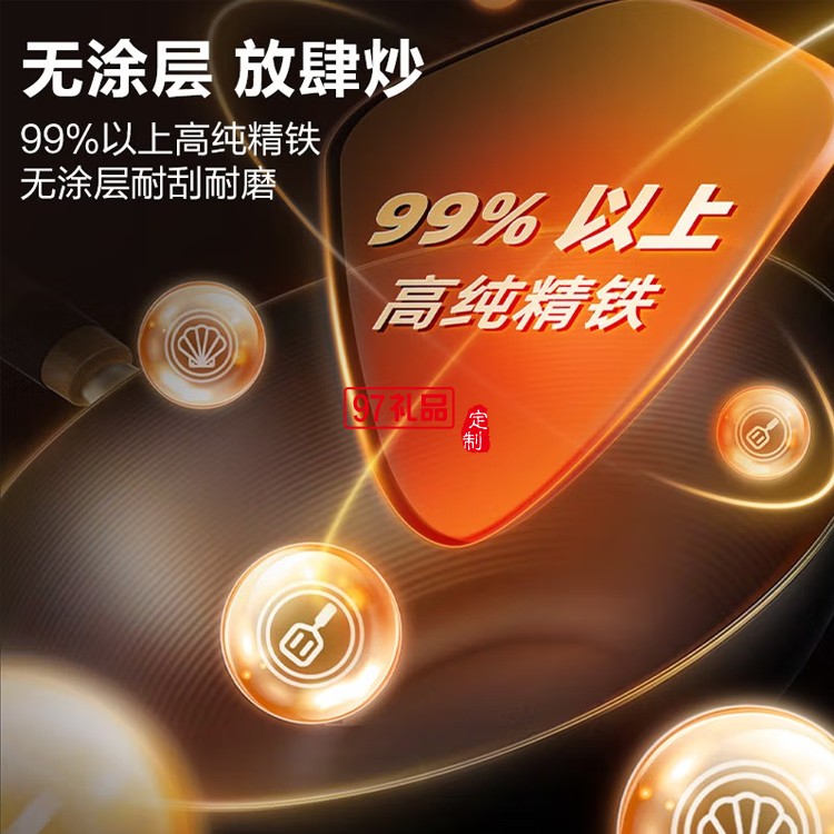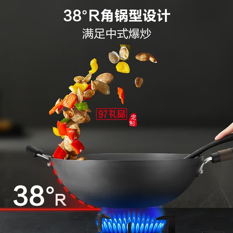 蘇泊爾鐵鍋有鈦無(wú)涂層炒鍋真不銹健康HC34A3定制公司廣告禮品