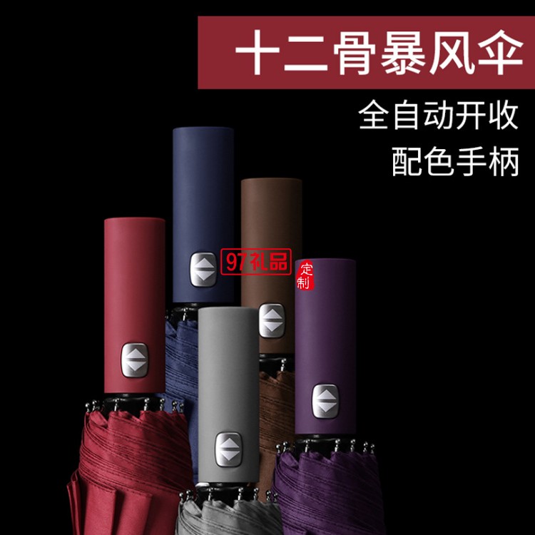 十二骨雙人雨傘三折全自動傘可定制LOGO活動小禮品