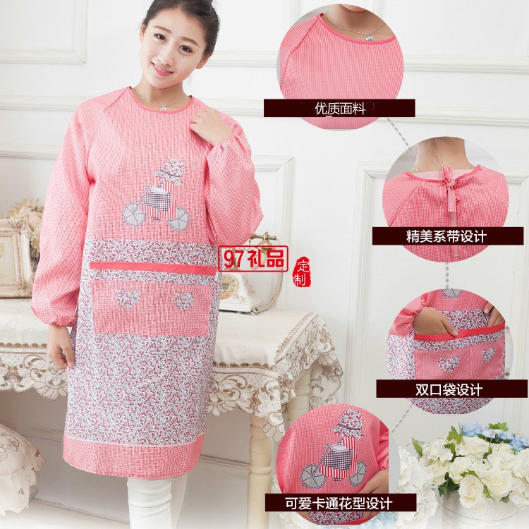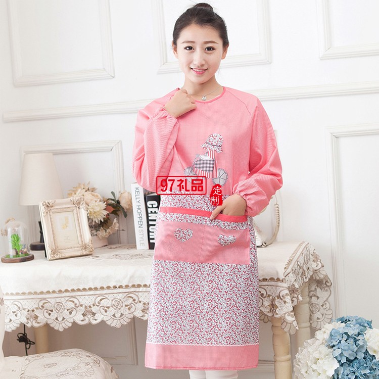 成人護衣罩衣廚房長袖圍裙大人反穿衣防水防油工作服定制公司廣告禮品