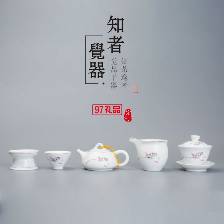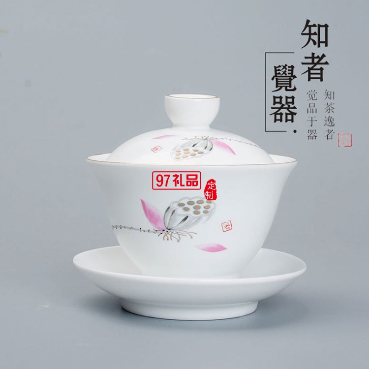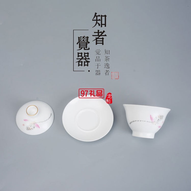 荷香茶具套轉(zhuǎn)斗笠蓋碗 商務(wù)送禮可定制LOGO