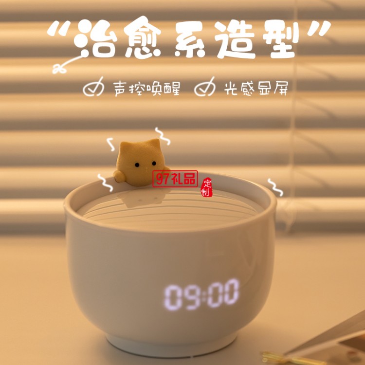 貓咪鬧鐘燈小夜燈床頭燈定制公司廣告禮品